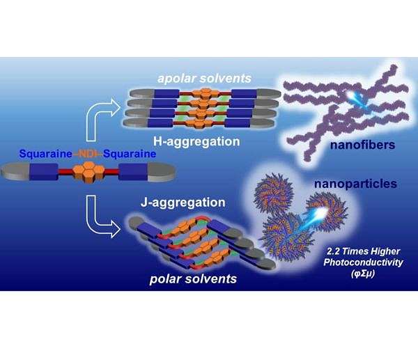 These different aggregate morphologies exhibit markedly different electronic behavior under illumination. Measurements showed that the J type aggregates produce nearly double the photocurrent response of the H type aggregates, highlighting how nanoscale packing and supramolecular architecture directly influence charge separation and transport. The results link solvent controlled self assembly to a measurable change in photoresponse in a single component organic material.